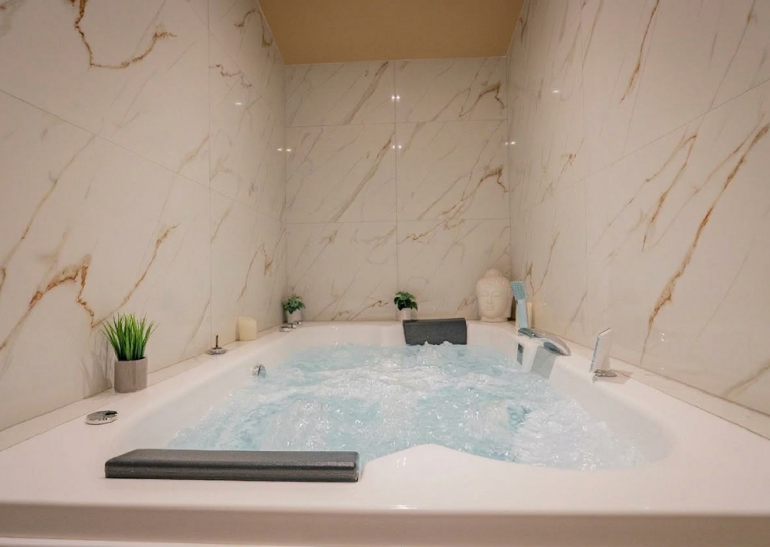 Our flat has a balneotherapy bath with massaging jets so you can relax while watching a film on your television with Netflix. The flat also has a terrace and comprises a separate bedroom with a double bed; a bathroom with shower and washing machine; a fully equipped kitchen with dishwasher, microwave, toaster, fridge, kettle and coffee machine; a living room with sofa and TV with Netflix.